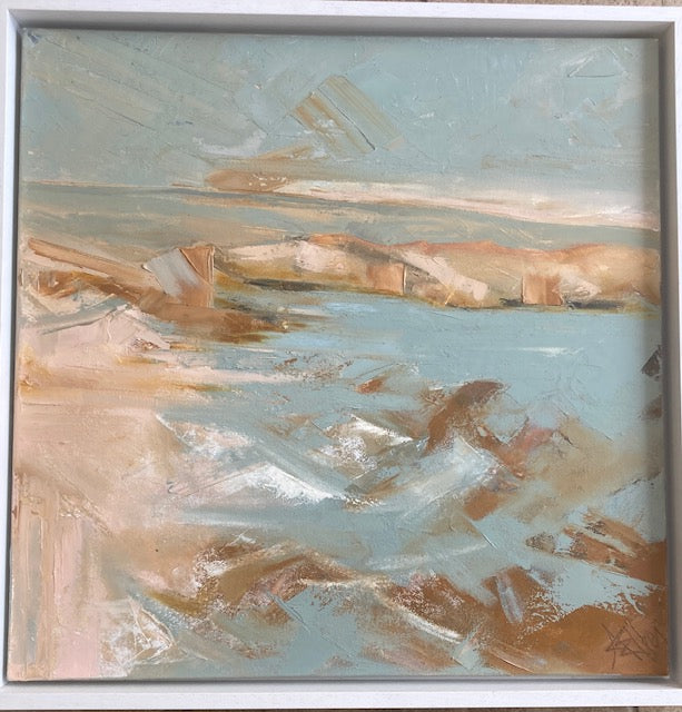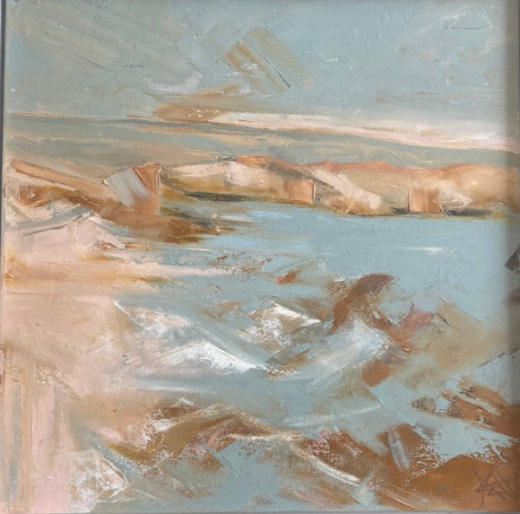 Angela is based in Somerset and paints plein air, exploring texture, pattern and form.