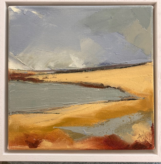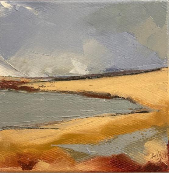 Angela is based in Somerset and paints plein air, exploring texture, pattern and form.