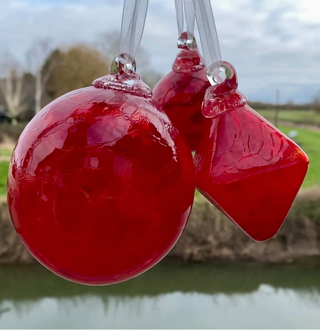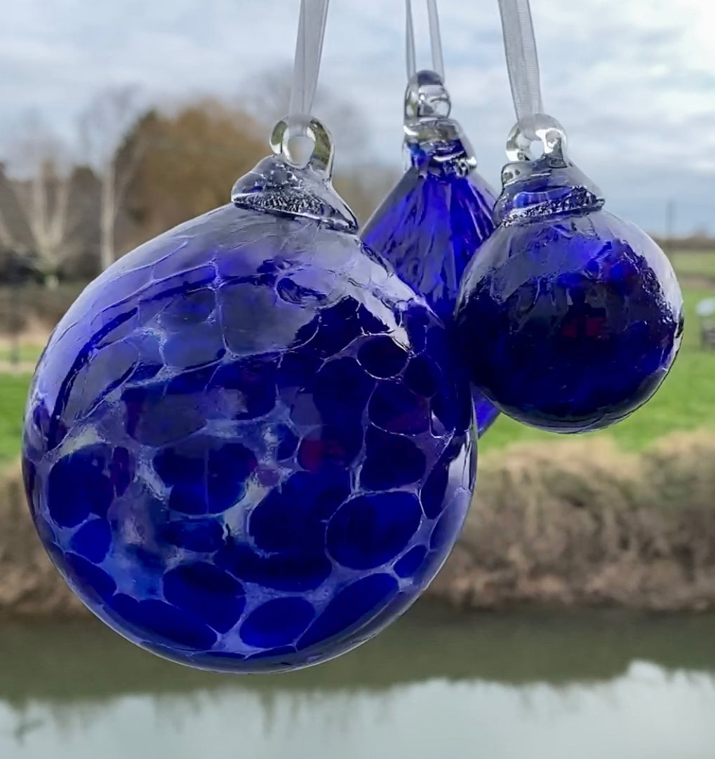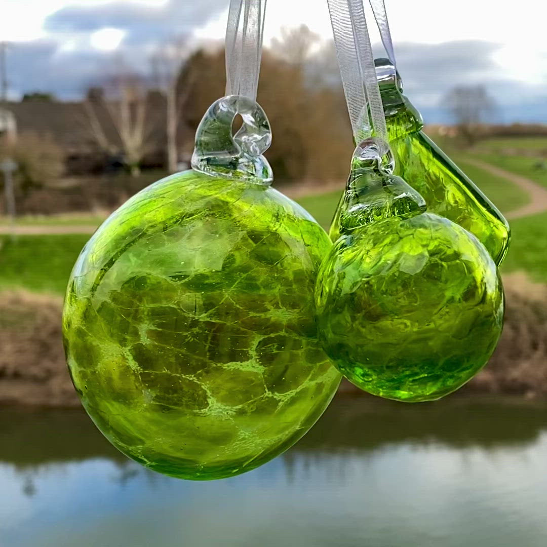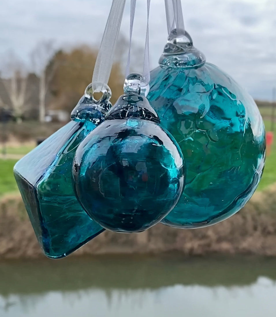 Our Classic range of handmade glass Baubles, beautiful and simple. They look good anywhere where they'll catch the light, gardens, curtain rails, windows, or even a xmas tree
