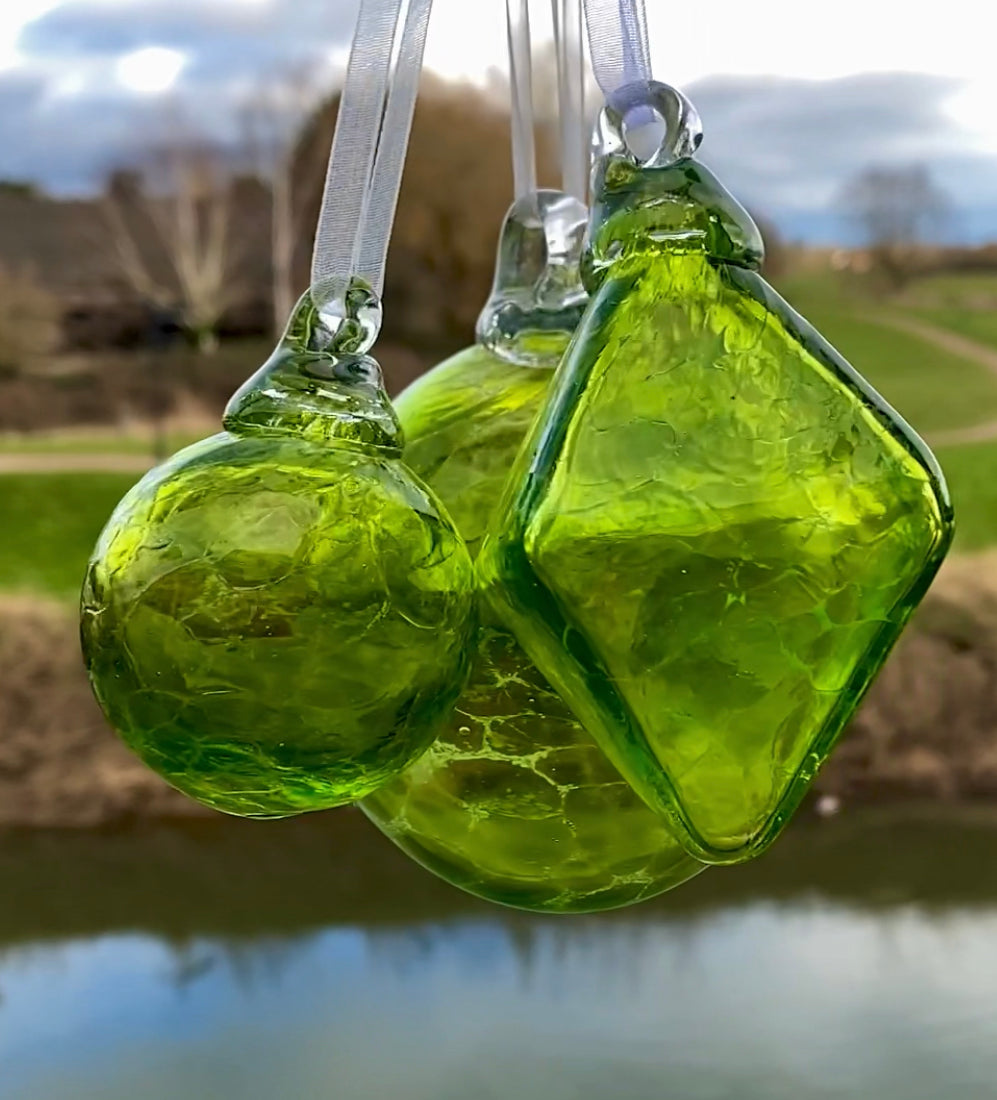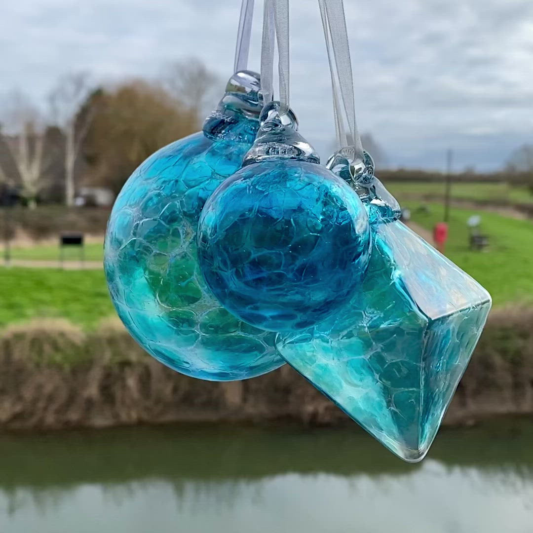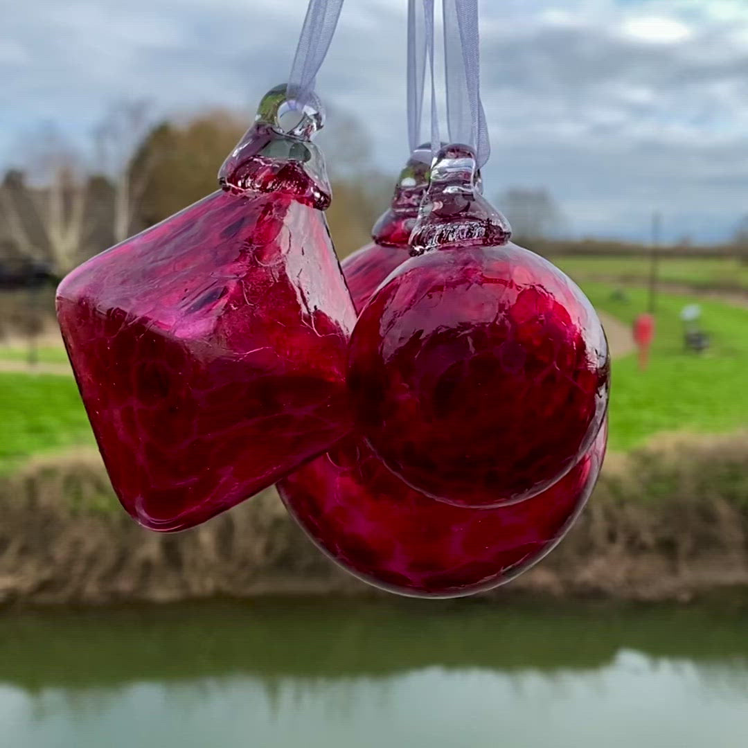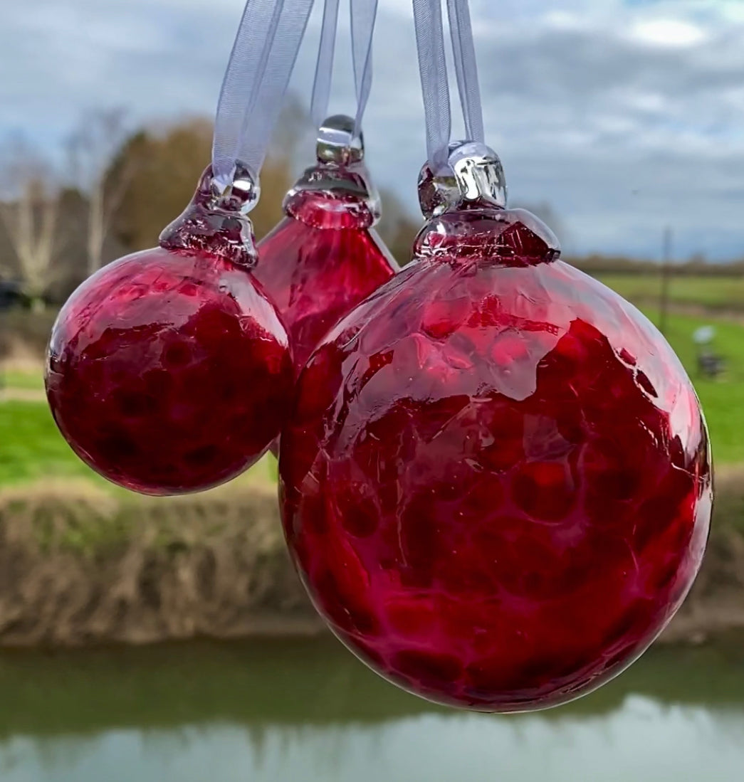 Our Classic range of handmade glass Baubles, beautiful and simple. They look good anywhere where they'll catch the light, gardens, curtain rails, windows, or even a xmas tree
