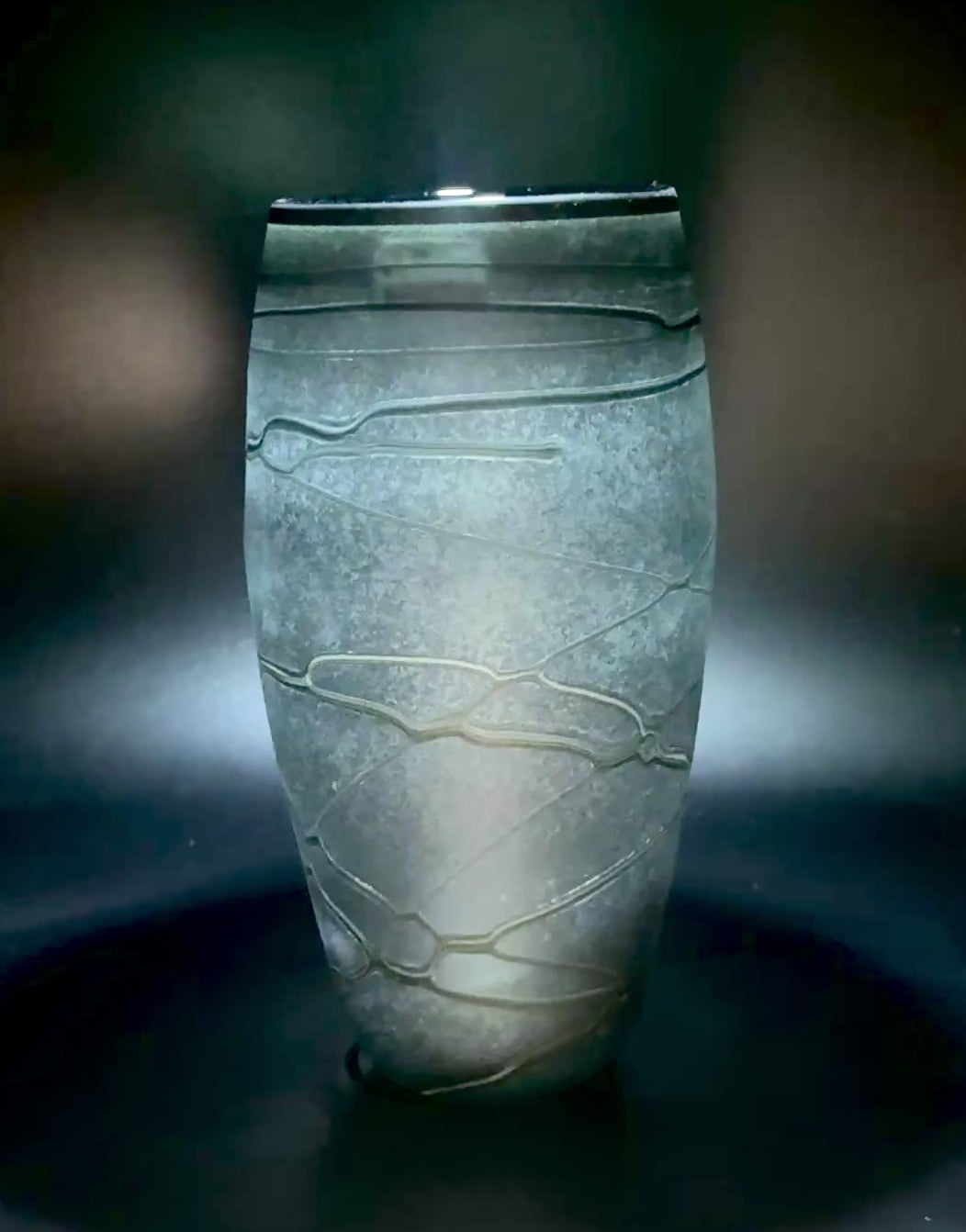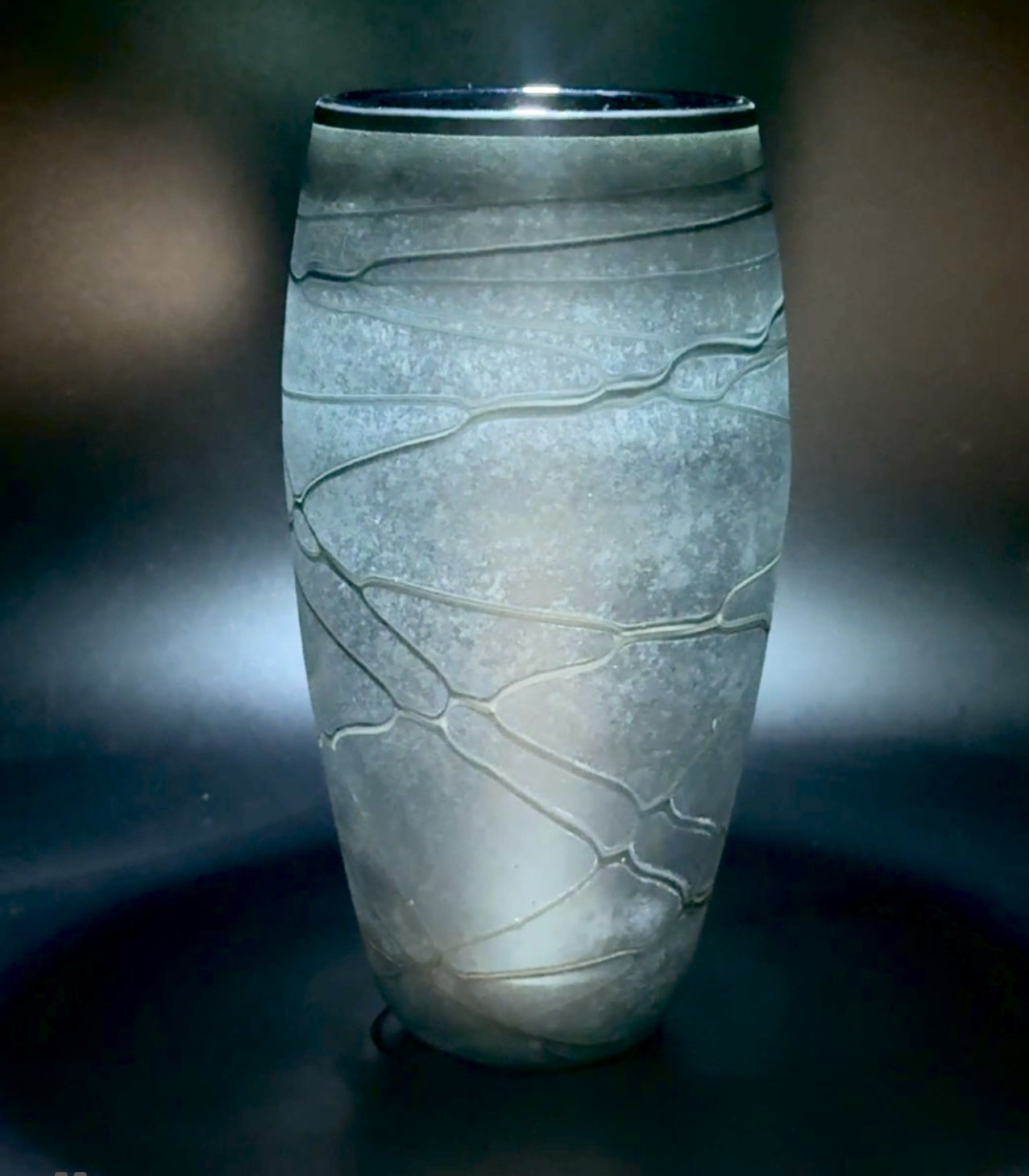When finished the piece is put into a kiln that is kept at a constant 500 degrees through the day. This is ramped down overnight to anneall everything I have made during the day. Once cold, we grind the bases of the piece to ensure they stand up straight and then sandblast them to give a matte finish.