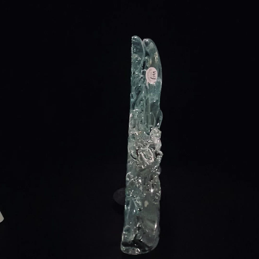 These pieces have all detail on the front and are flat on the back. Therefore they are best suited to being placed on a window sill or against a wall. The second photo shows the back.