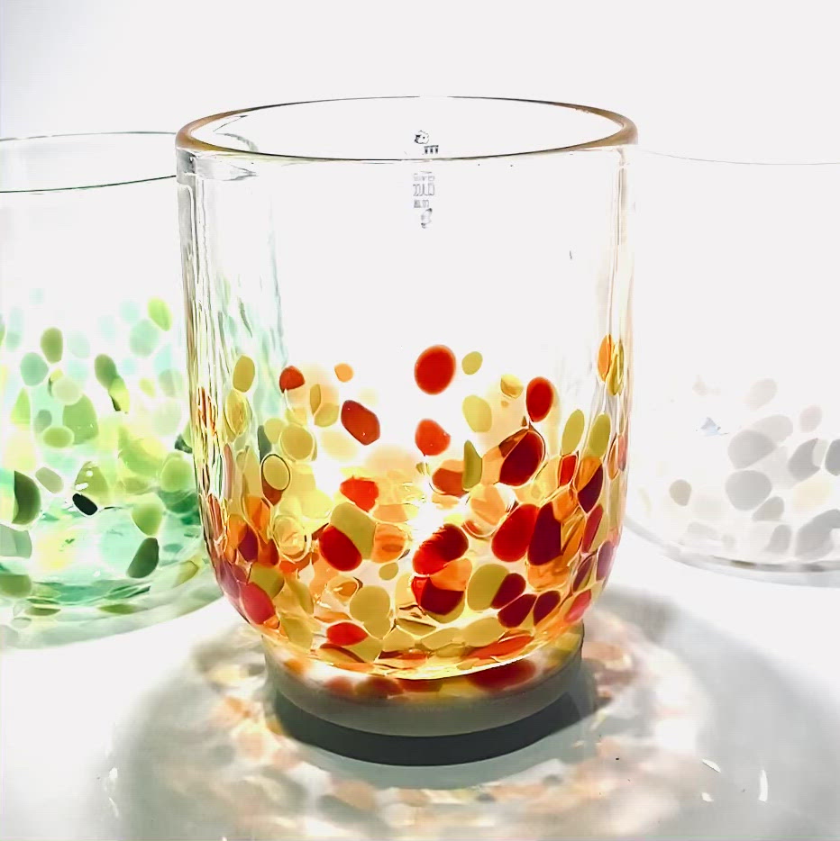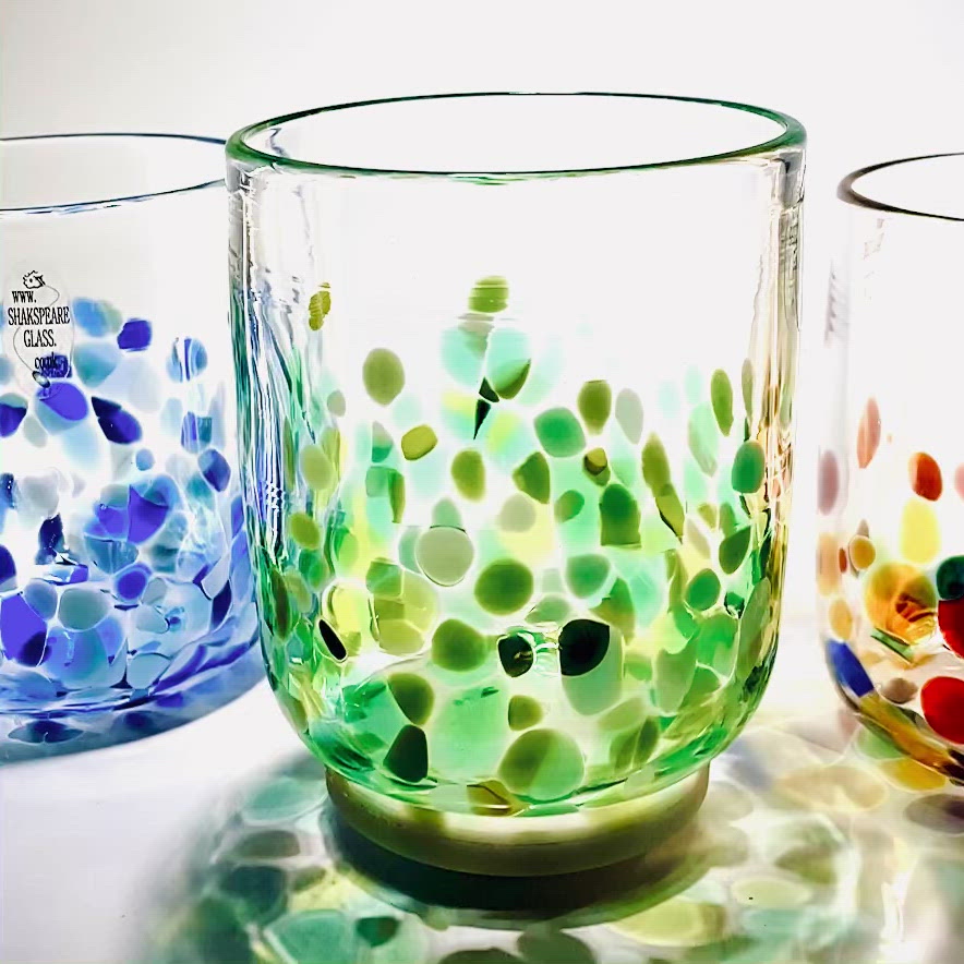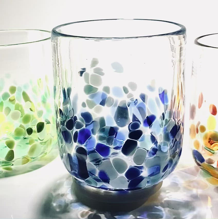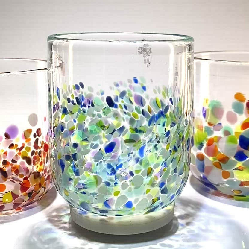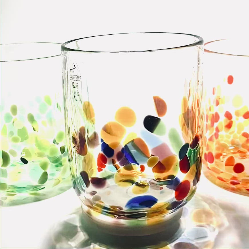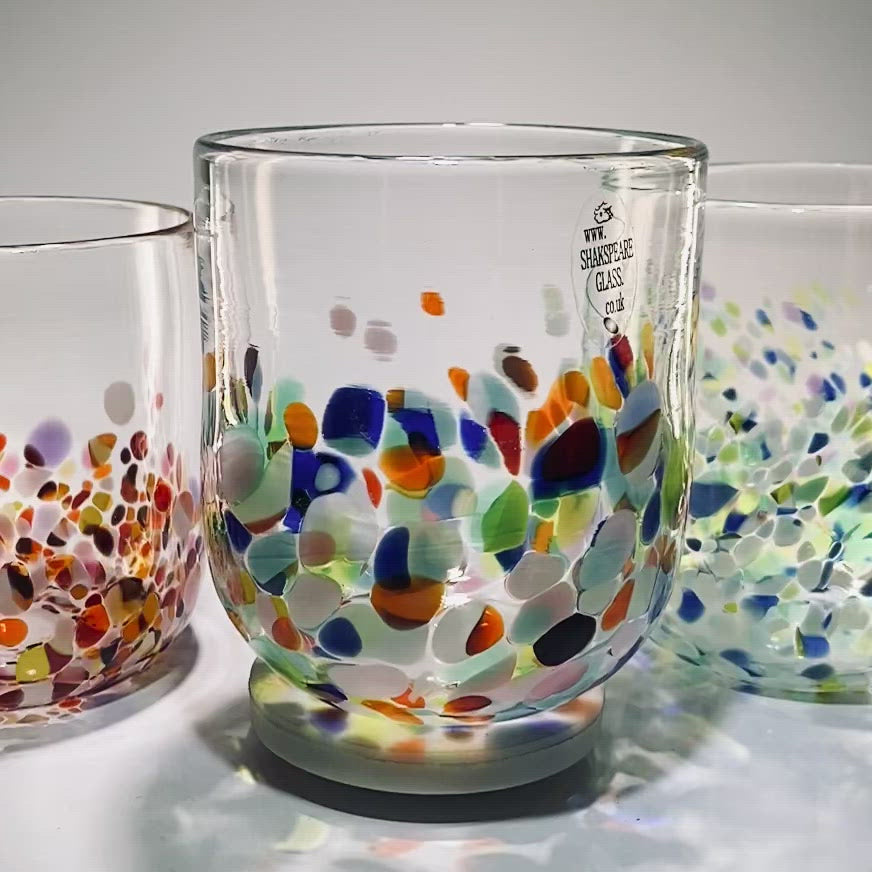 Please note that our tumblers may differ from glass to glass, due to the fact that they are completely handmade. If you order more than one we will send you tumblers of a very similar size, however we guarantee they will all be slightly different. If this worries you there are many good retail stores that sell identical mass produced glass!!