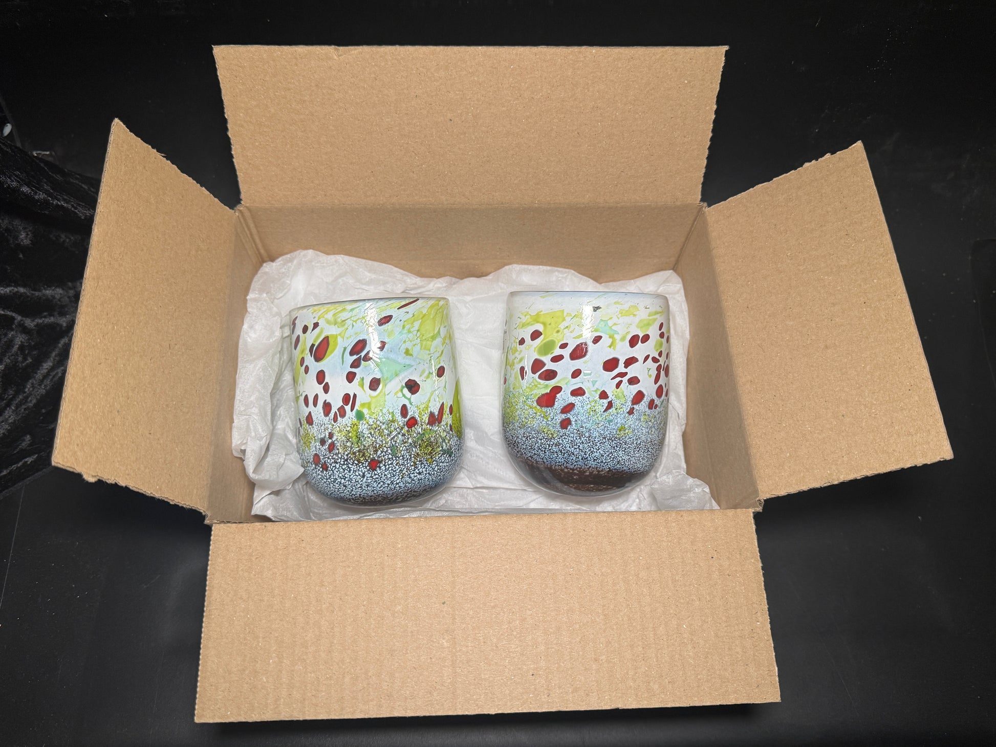 And these are our extra special tumblers that we make in extremely limited runs. We are doing an even more special 2 for £90. They normally retail for £49.50 each. The pair come in their own box, each one signed. A useable collectable bit of art. Perfect as a present, sure to be appreciated and used.