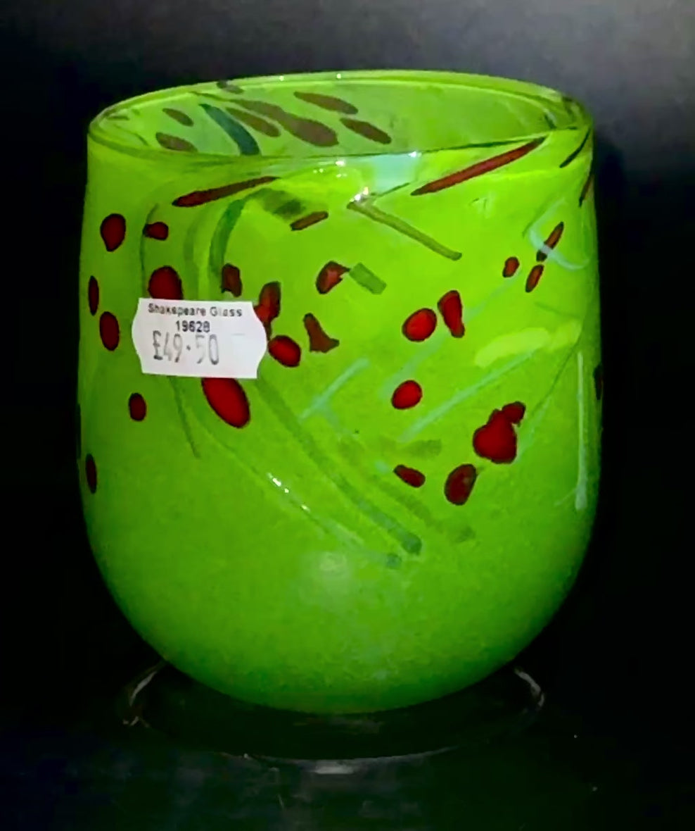 Please note that our tumblers may differ from glass to glass, due to the fact that they are completely handmade. If you order more than one we will send you tumblers of a very similar size, however we guarantee they will all be slightly different. If this worries you there are many good retail stores that sell identical mass produced glass!!